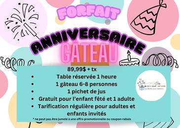Les forfaits anniversaire peuvent être changé et/ou modifié, autant au niveau de la formule que de la tarification, sans préavis.