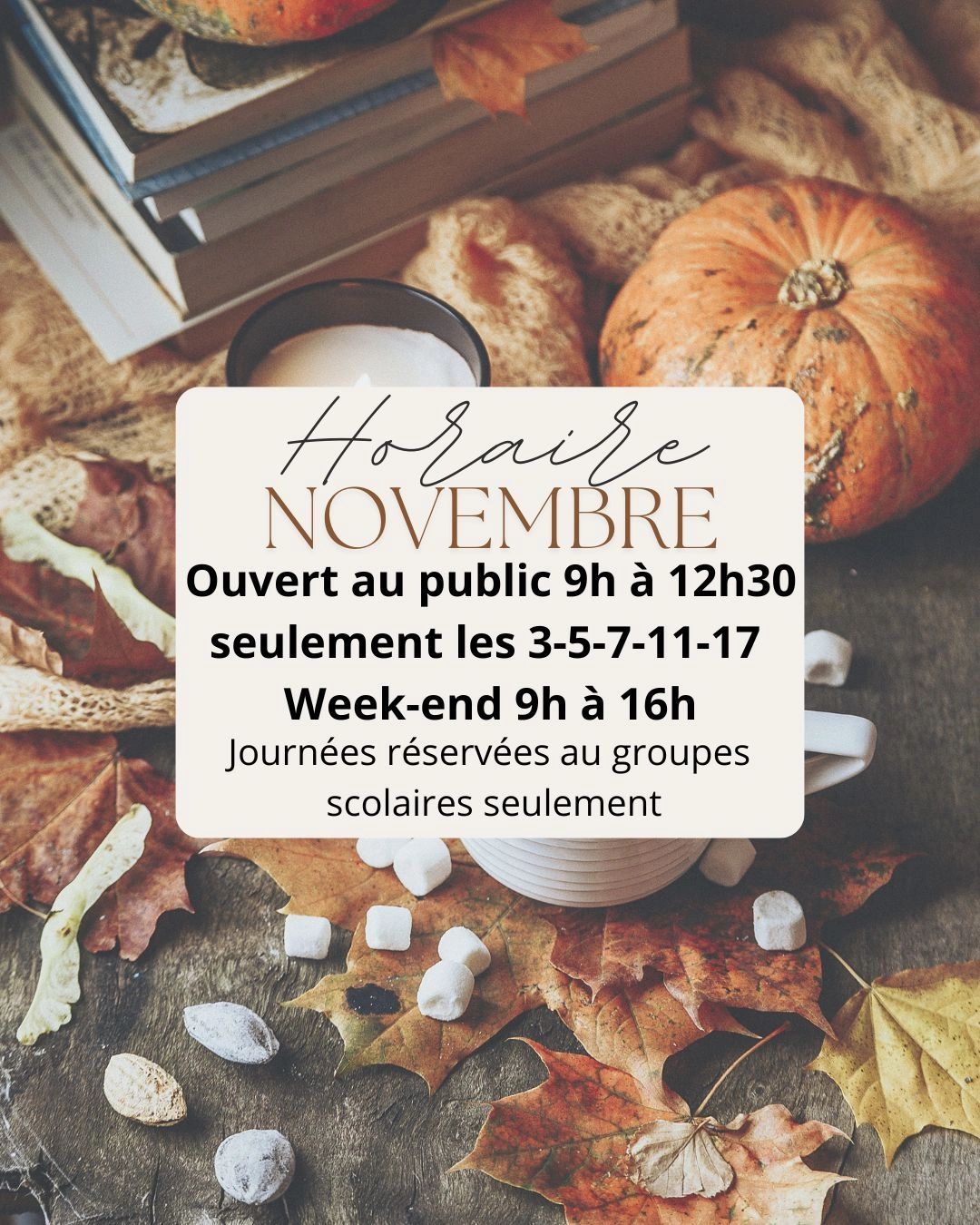 Le mois de novembre est bien rempli! Nous recevons plusieurs groupes scolaires pendant la semaine, donc nos journées libres au public sont limitées.